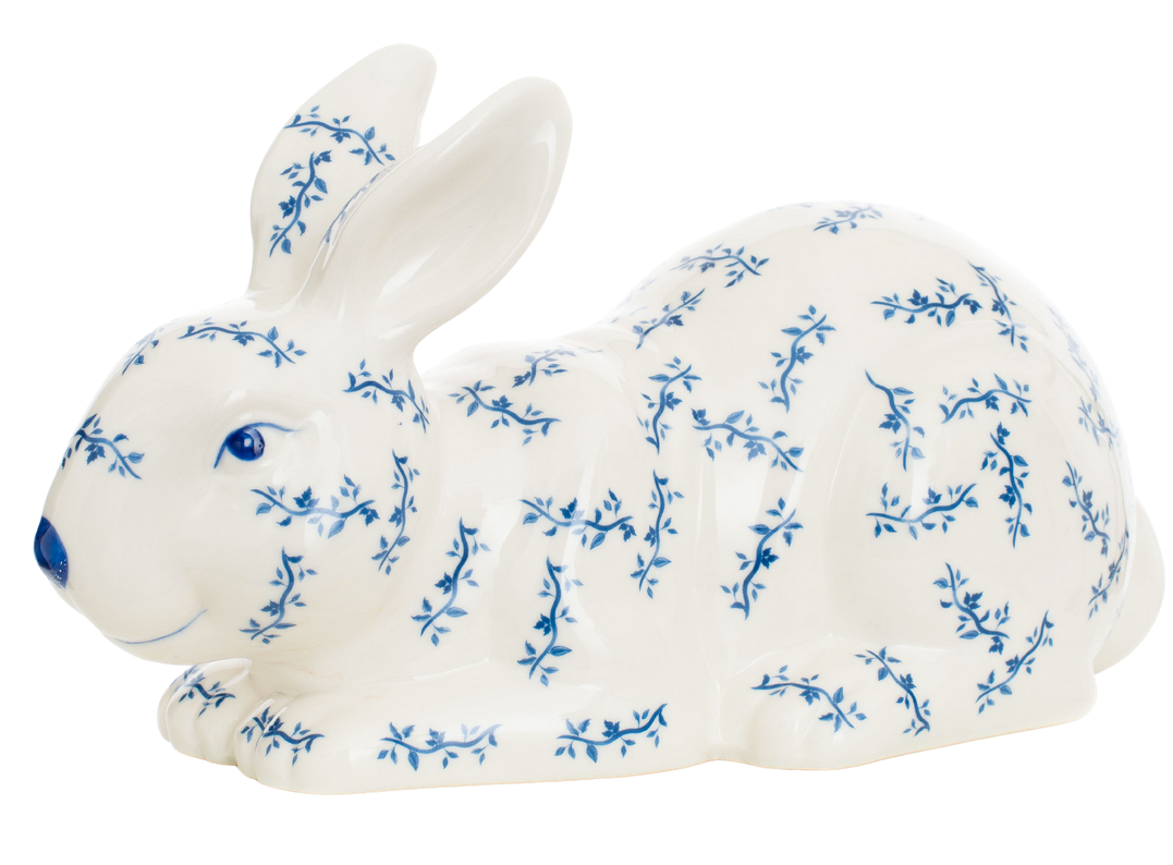 Add a whimsical touch to your d¨¦cor with this charming blue and white porcelain bunny. This bunny is perfect for adding a touch of playful elegance to your home.
